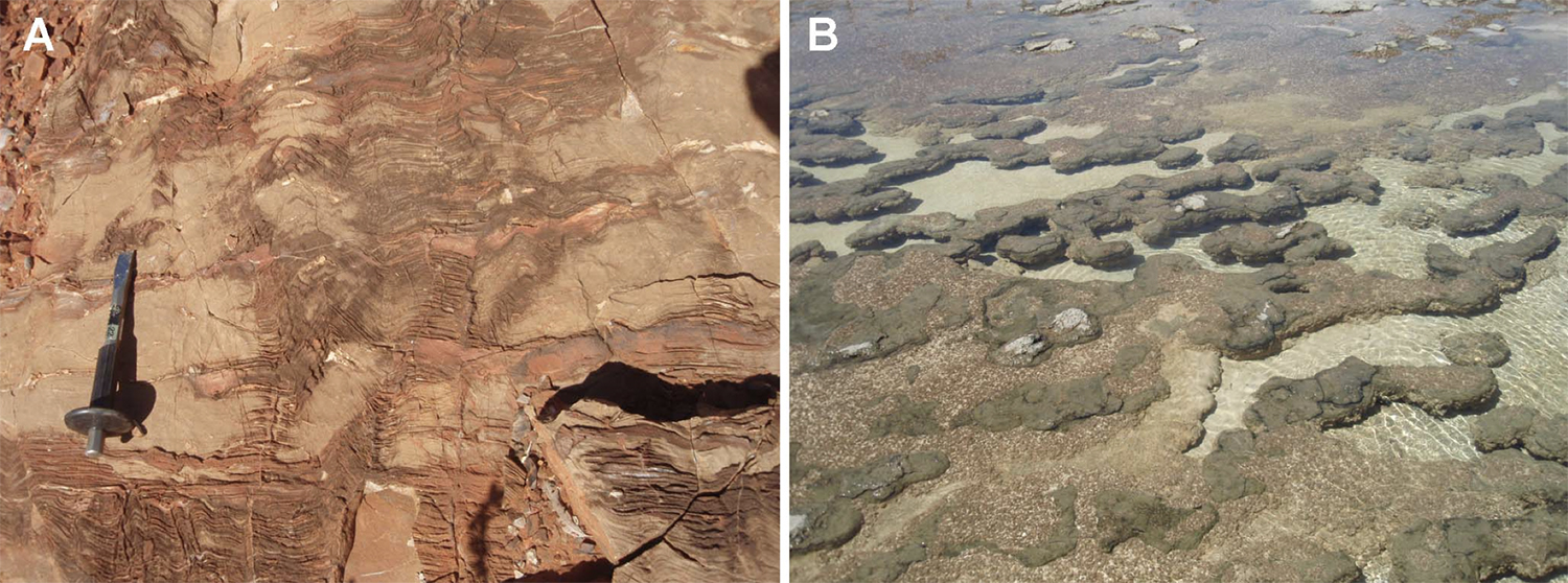 A)西オーストラリア州ピルバラ地方に見られる約35億年前のストロマトライト