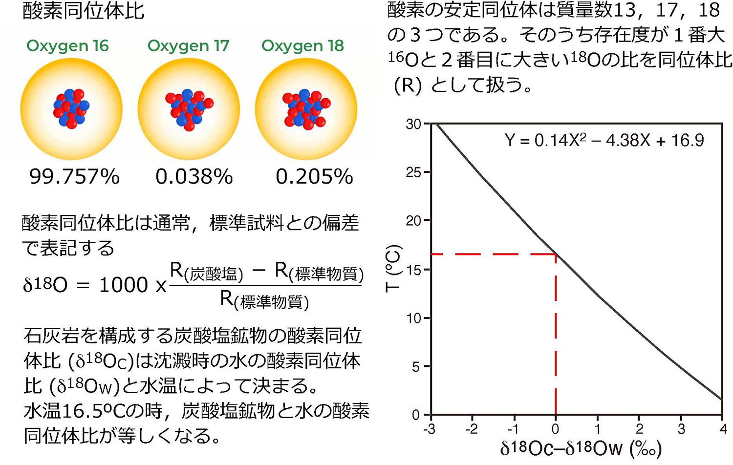 fig.3──プロキシとしての酸素同位体比。炭酸塩鉱物の酸素同位体比は水温と水の同位体比によって決まる。