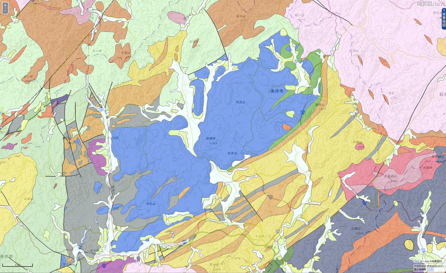 fig.10──山口県の秋芳台付近の地質と地形(地質図Naviより引用・修正)