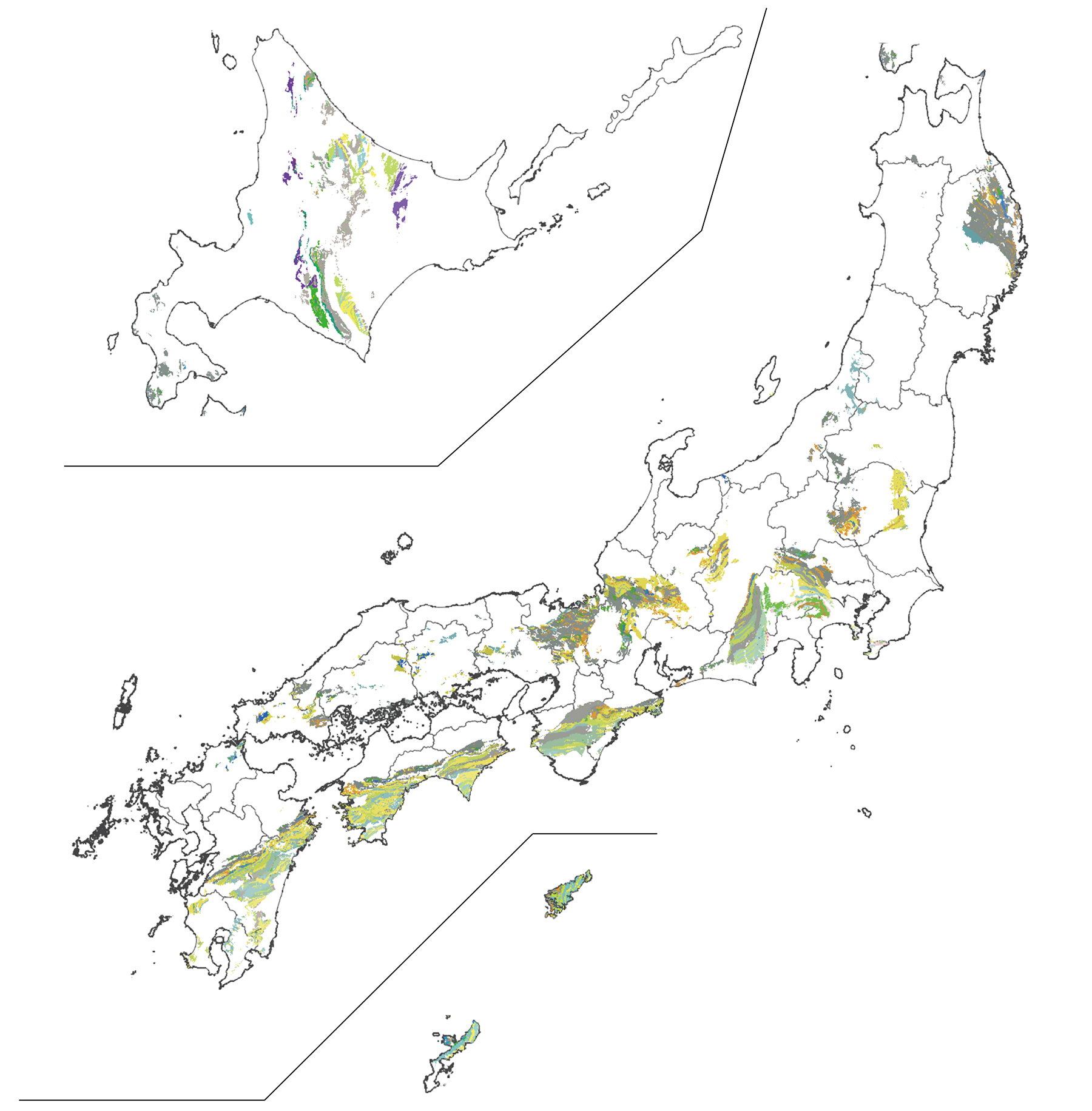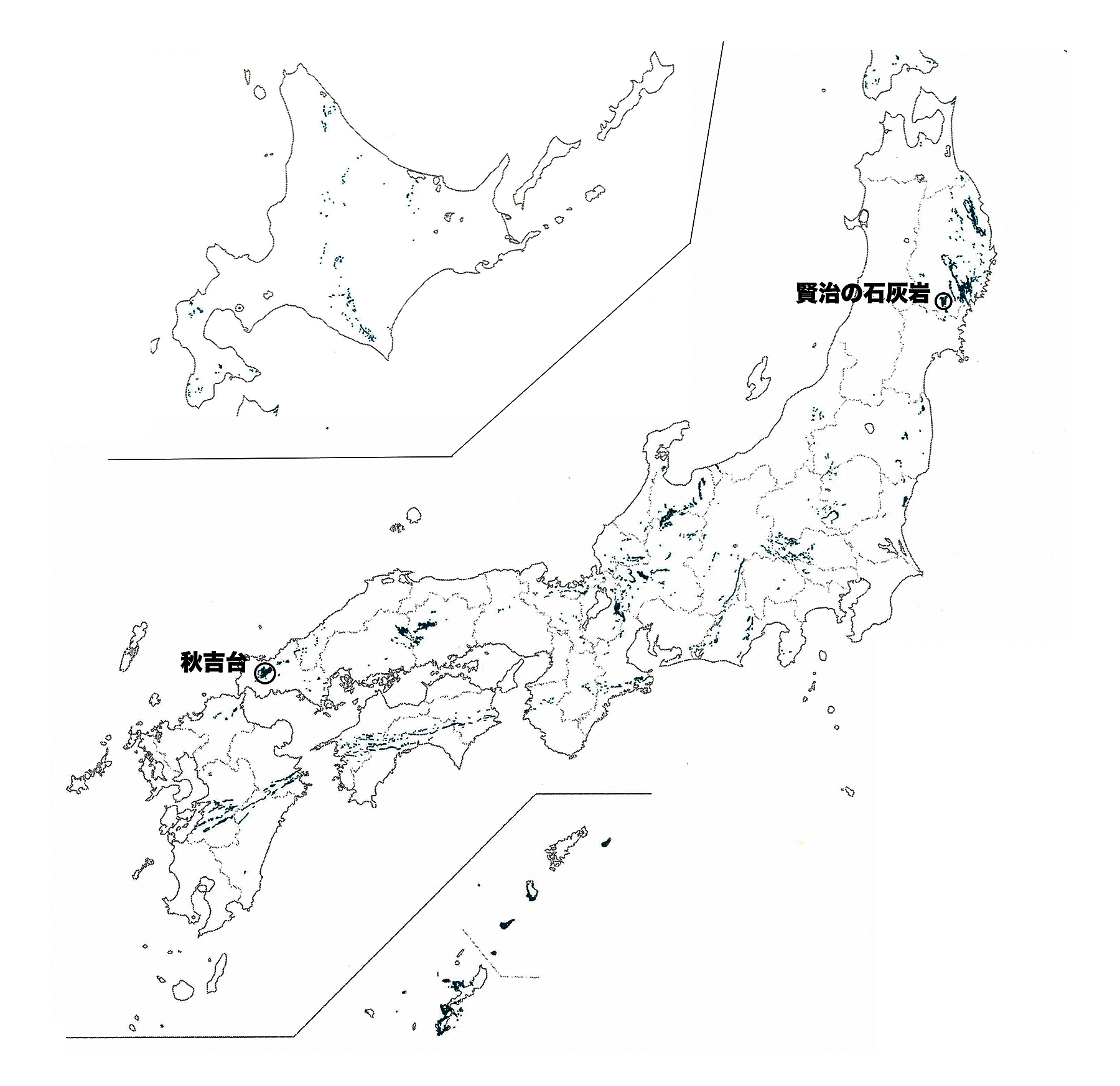 fig.4──日本列島の石灰岩。INAXライブミュージアム『日本の白い壁──石灰がつくり出す多様な世界』(LIXIL出版、2012)35頁より引用・修正。