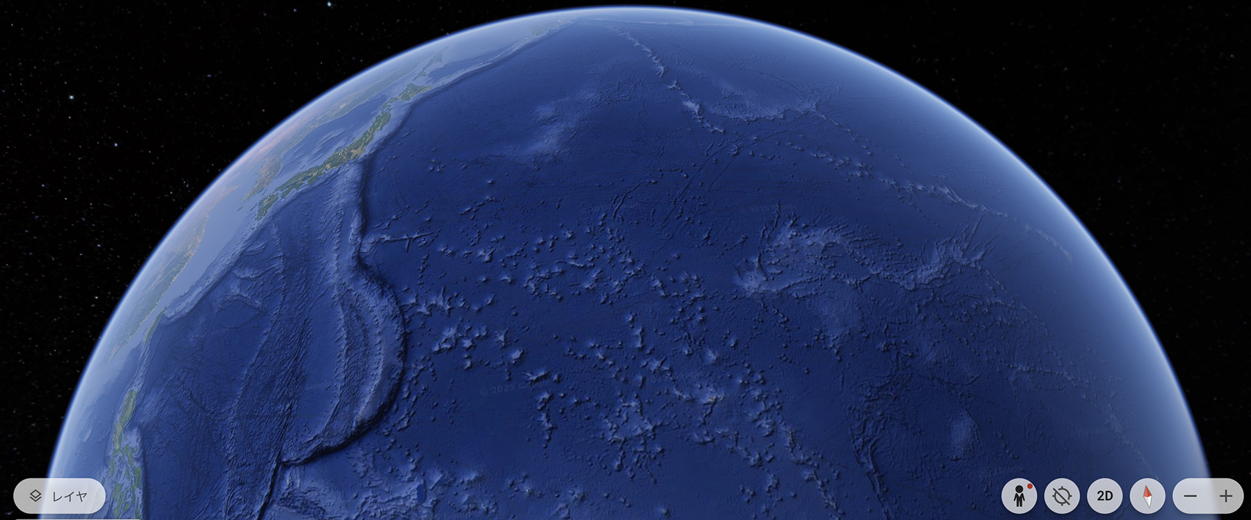 fig.6──西太平洋に分布する無数の海山(Google Earthより引用)